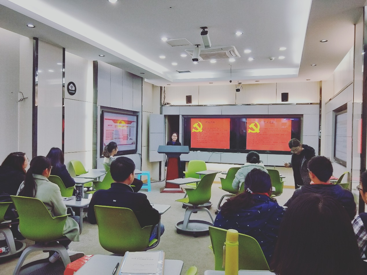 随后会议进入十九大精神的学习,范超同志以十九大报告的主题为切入点,引出十九大报告的中强调的几大要点,深入浅出的讲述了中国特色社会主义进入新时代的关键问题和解决方案。最后,参会人员以小组为单位进行讨论,并积极地交流分享自己的学习感悟,从教育、就业创业、环境、经济等方面进行了详细的剖析,与深入的学习。
